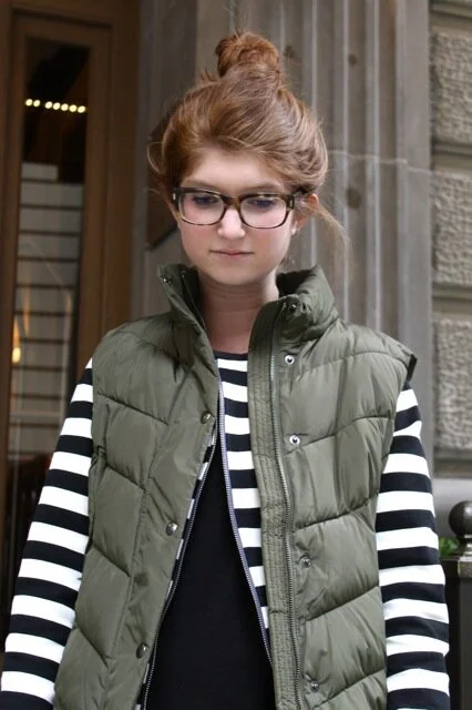 outfit: green on a gray day